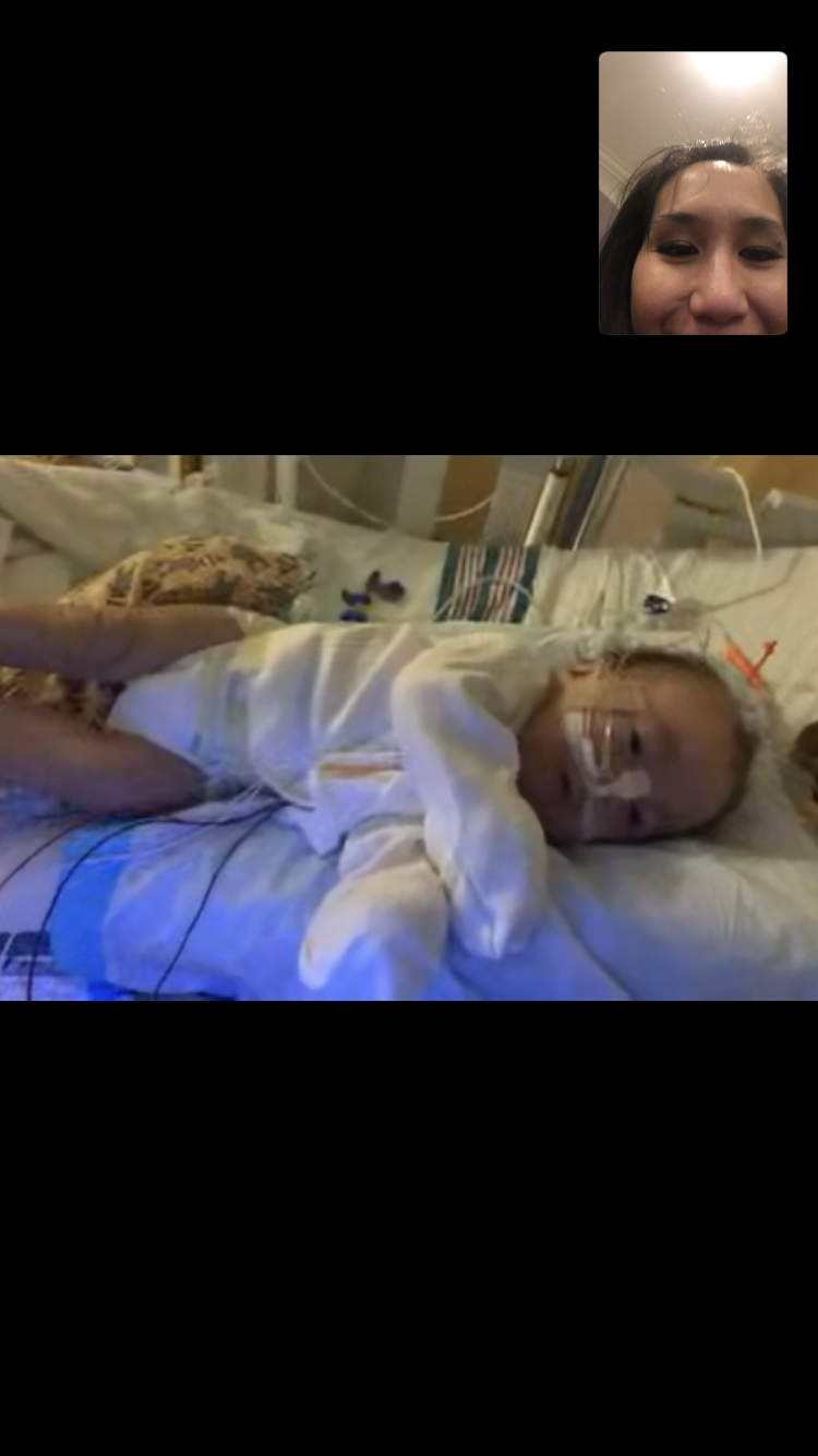 Joey survived day 2 of nasal cannula. He is requiring more oxygen-he is probably hovering at about 32 percent, but I suppose that is to be expected as they wean his support away. He is almost 7 lbs. He had one bout of fussiness yesterday, but I think overall he had a pretty good day. He was happy, entertained us, and himself. I was musing yesterday that I wanted to see Joey smile more. I see other kids on our groups who have happy smiles, and there's a part of me that wishes he had more smiles for me. I have caught a few Joey smiles before, but I just wonder if he should be smiling more? Isn't funny that as moms if we're not worrying about something major, like my child and his breathing or heart repair surgery, then I'll find something else to worry about it-like is he smiling enough?! If there's not one thing to worry about, then I'll find something else to worry about-don't worry. (no pun intended, ha). What's amazing is that later in the evening, Daniel called to face time. He was so excited to share with me that Joey was moving around and smiling. Isn't God funny? I call that another God wink. I see a couple of sneaky smiles!